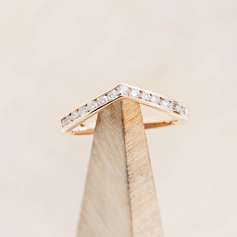 This ring guard was originally made for our "Raya" engagement ring but fits "Lucy" amazing as well! This ring guard features diamond accents and the inlay material of your choice and adds a protective element to the ring set.