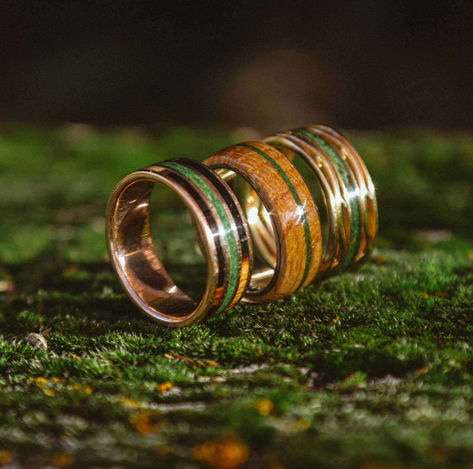 "VERTIGO" - OFFSET WHISKEY BARREL OAK WEDDING BAND
