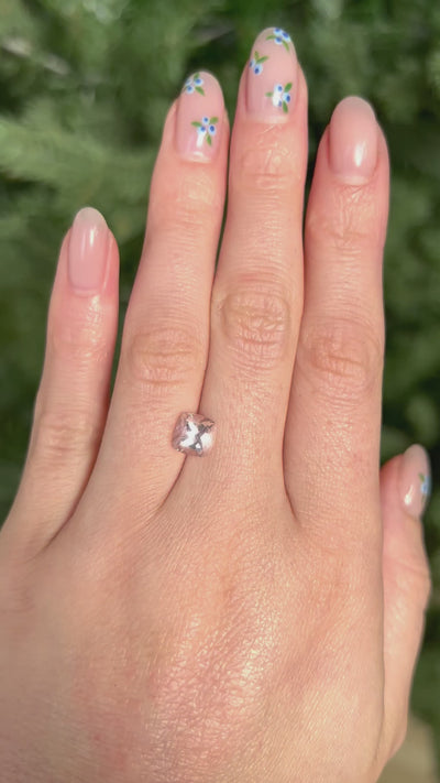 A beautiful Morganite that embodies elegance and charm with its unique color and cut. This beautiful stone offers charming light pink tones that are truly mesmerizing in natural light. There is no better way to represent love and romance than with a pink stone!