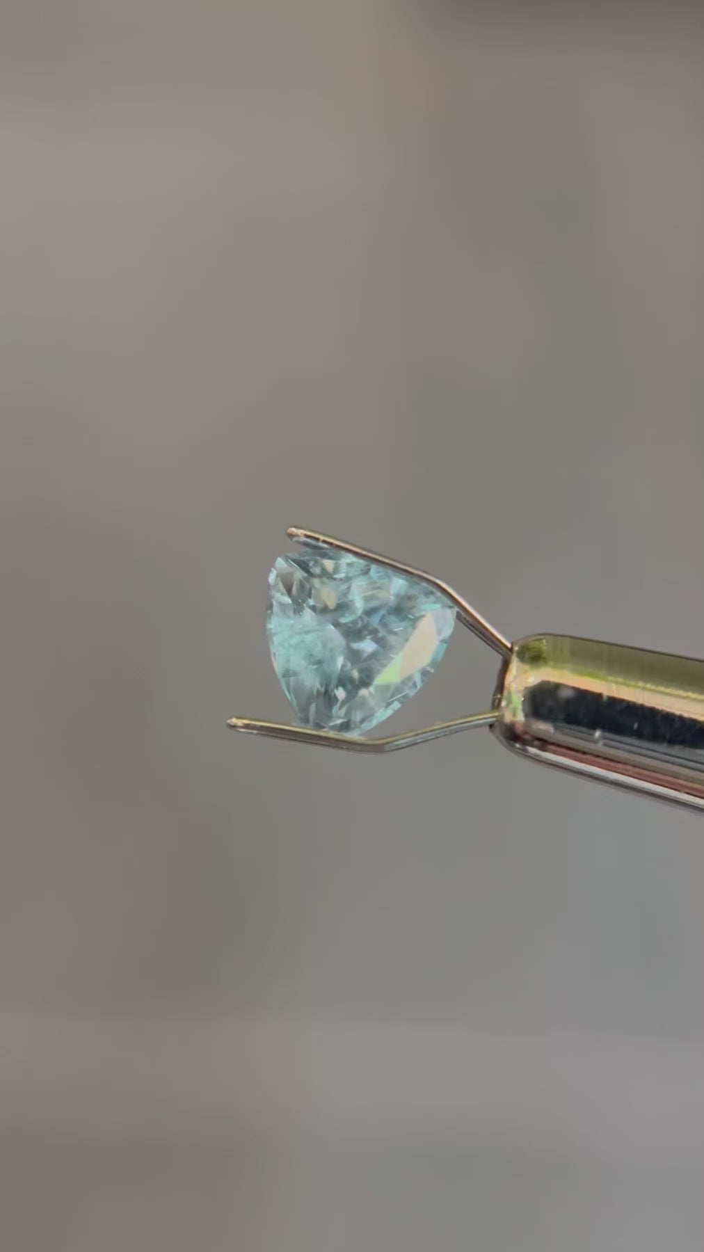 It is easy to become entranced in the unique colors and dazzling cut of this Montana sapphire! Unheated (natural) sapphires are those that have not undergone any artificial heat treatment to enhance their color, meaning this stone's distinct mint hue has not been altered. This trillion brilliant cut offers a modern and sophisticated appearance, with sharp angles and sparkling facets. It is a versatile gemstone that can be used in both classic and contemporary jewelry designs.