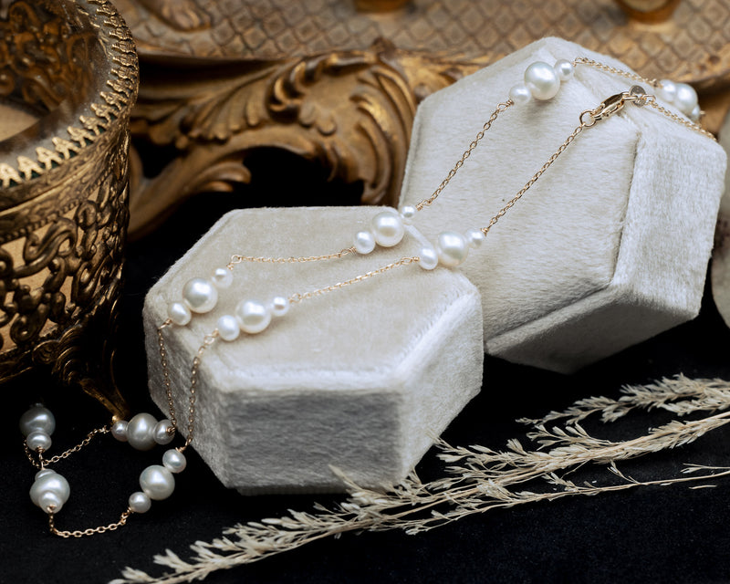 14K GOLD NECKLACE WITH CULTURED WHITE FRESHWATER PEARLS