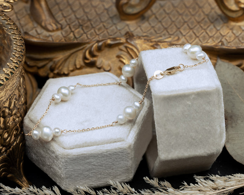 14K GOLD WHITE FRESHWATER PEARL BRACELET
