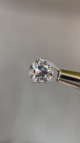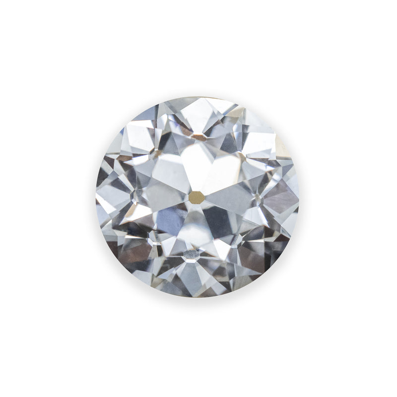 Unlike more modern cuts, this round diamond is cut in a unique style developed in Europe and popular from 1890 to 1930. Old European cut diamonds are known for their larger facets, smaller tables, and higher crowns. The biggest visual difference between an old European cut and the modern round brilliant is that the old cut favors dispersion or "fire," the multi-colored flashes of light from within the stone.