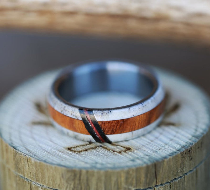 ANTLER, WOOD & AN ACRYLIC INLAY WEDDING BAND
