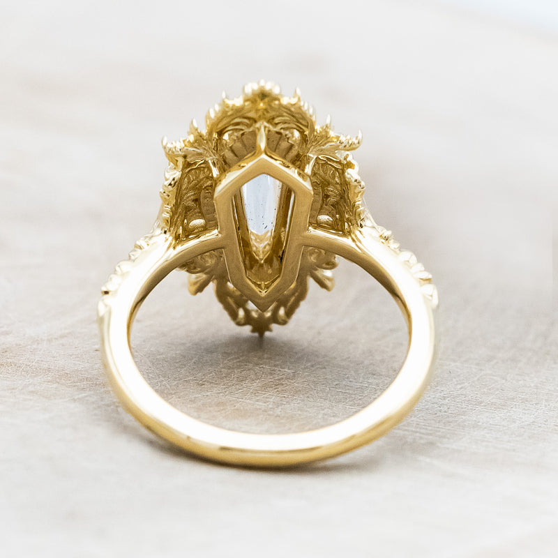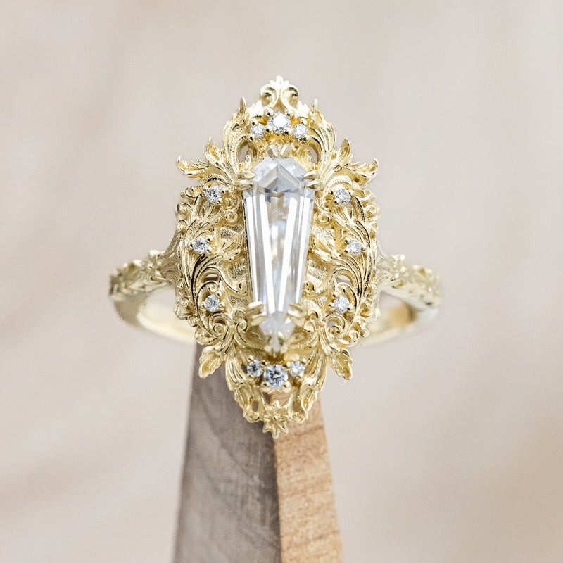 "CHERIE" - ROCOCO-STYLE DAGGER CUT MOISSANITE ENGAGEMENT RING WITH DIAMOND ACCENTS