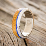 "ARGOS" - WHISKEY BARREL OAK, LAPIS LAZULI & ANTLER WEDDING BAND