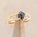 "BLOSSOM" - ROUND CUT MOSS AGATE ENGAGEMENT RING WITH DIAMOND ACCENTS