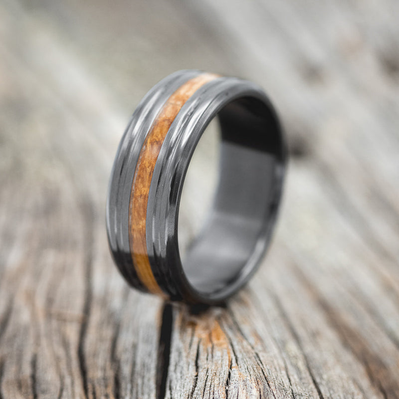 "AUSTIN" - WHISKEY BARREL OAK WEDDING BAND - BLACK ZIRCONIUM - SIZE 8