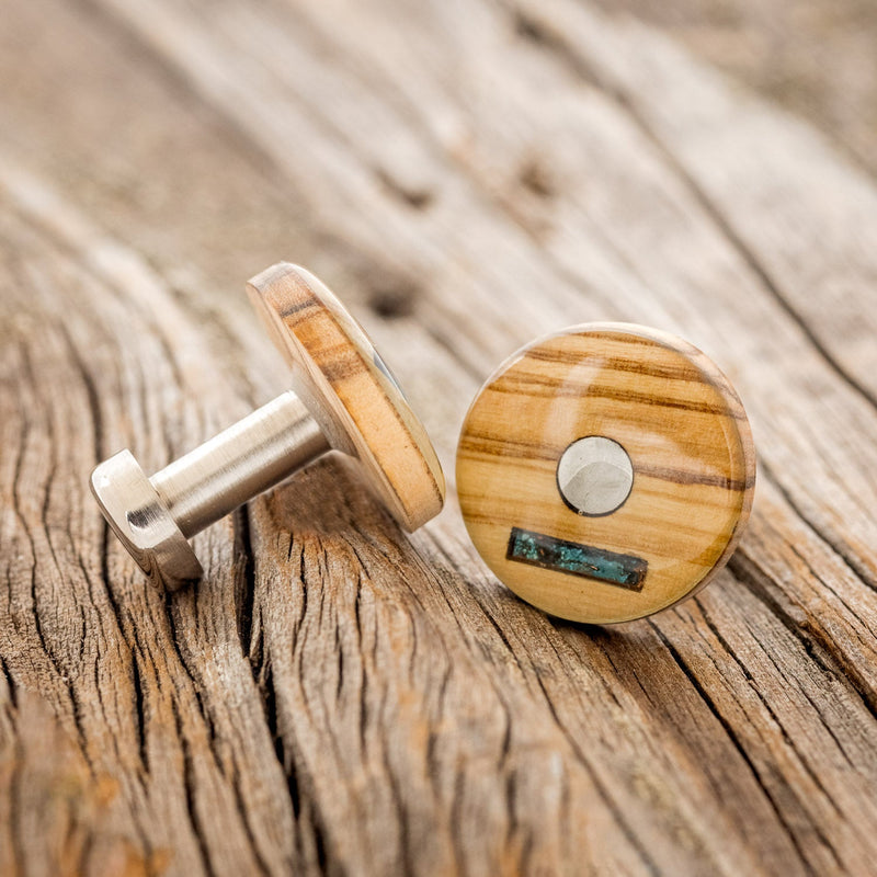 AUTHENTIC BETHLEHEM OLIVE WOOD CUFFLINKS WITH PATINA COPPER INLAYS