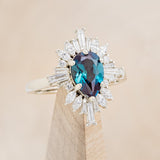 "AUTUMN" - PEAR CUT LAB-GROWN ALEXANDRITE ENGAGEMENT RING WITH DIAMOND HALO