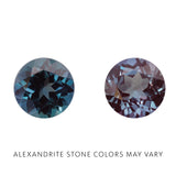 Alexandrite is a color-changing gemstone, shifting between shades of green, blue, purple, and red depending on the light. Additionally, each stone varies in color and appearance based on how much chromium and other trace elements are in the stone, the lighting the stone is exposed to, the cut of the stone, etc. Click here to learn more about alexandrite's properties.