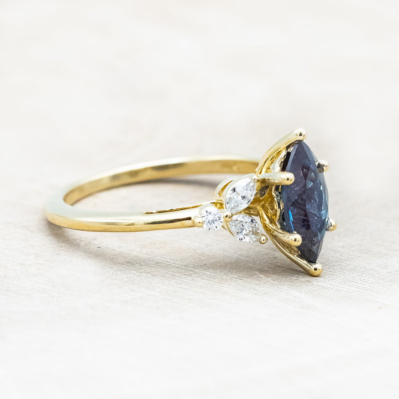 "BLOSSOM" - MARQUISE CUT LAB-GROWN ALEXANDRITE ENGAGEMENT RING WITH DIAMOND ACCENTS