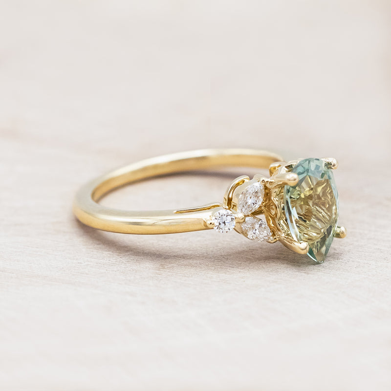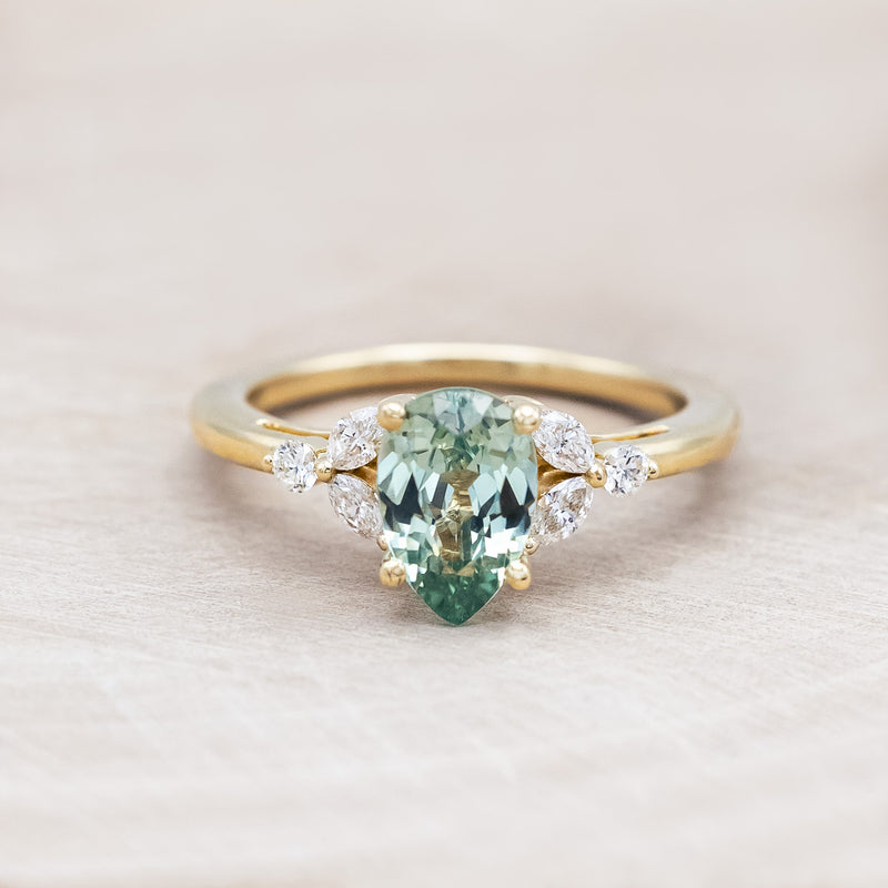 "BLOSSOM" - PEAR CUT LAB-GROWN GREEN SAPPHIRE ENGAGEMENT RING WITH DIAMOND ACCENTS