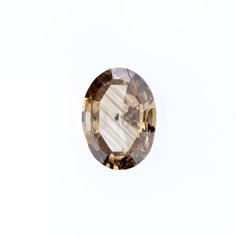 "Bouzy" is a beautiful champagne-colored salt and pepper diamond in a lovely oval cut. This champagne salt and pepper diamond has few inclusions and has unique color banding. It is easy to become entranced in the unique coloring and brilliant reflection this stone showcases!
