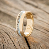 • Ring Style: "Castor" is a custom, handcrafted men's wedding ring featuring a 14K gold base with a hand-crushed turquoise & antler inlay