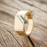 "COLTER" - FLAT TOP WEDDING RING FEATURING DIAGONAL ONYX & TURQUOISE INLAYS