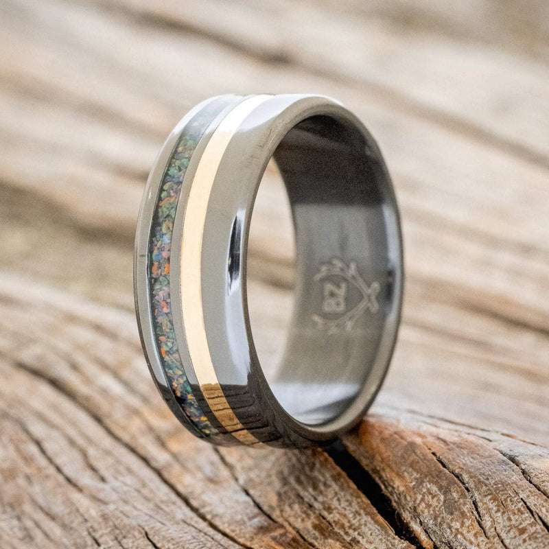 "COSMO" - BLACK FIRE OPAL & 14K GOLD INLAY WEDDING RING