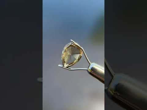 "De La Marne" is a beautiful champagne-colored salt and pepper diamond in a lovely pear cut. This champagne salt and pepper diamond has very few inclusions creating a distressed appearance. It is easy to become entranced in the unique colors and nice clarity this stone showcases!