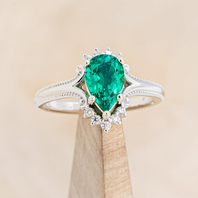 "DESTINY" - PEAR CUT LAB-GROWN EMERALD ENGAGEMENT RING WITH DIAMOND ACCENTS