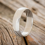 • Ring Style: A handcrafted men's wedding ring featuring a solid metal band with a domed profile. Additional inlay options are available upon request.