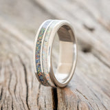 • Ring Style: "Dyad" is a custom, handcrafted men's wedding ring featuring 2 channels with fire and ice opal and black fire opal inlays. Additional inlay options are available upon request.
