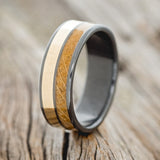 • Ring Style: "Dyad" is a custom, handcrafted men's wedding ring featuring 2 channels with 14K gold and whiskey barrel oak inlays