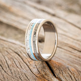 "ELEMENT" - MOONSTONE, TURQUOISE, ANTLER & 14K ROSE GOLD INLAY WEDDING BAND