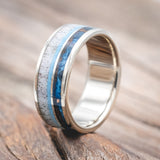 • Ring Style: "Element" is a custom, handcrafted men's wedding ring featuring patina copper, turquoise, and antler inlays