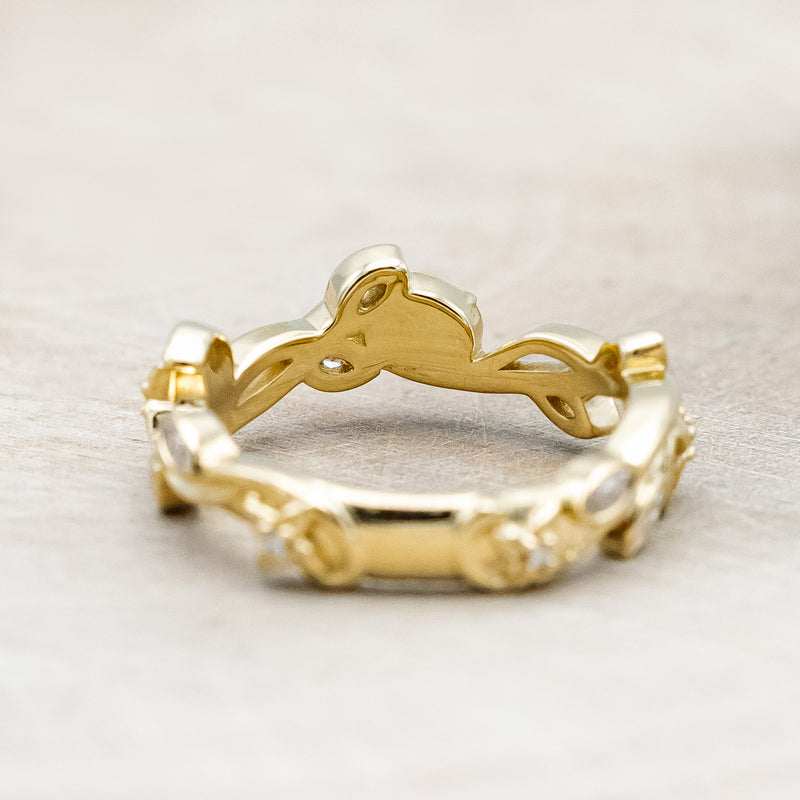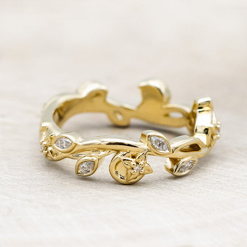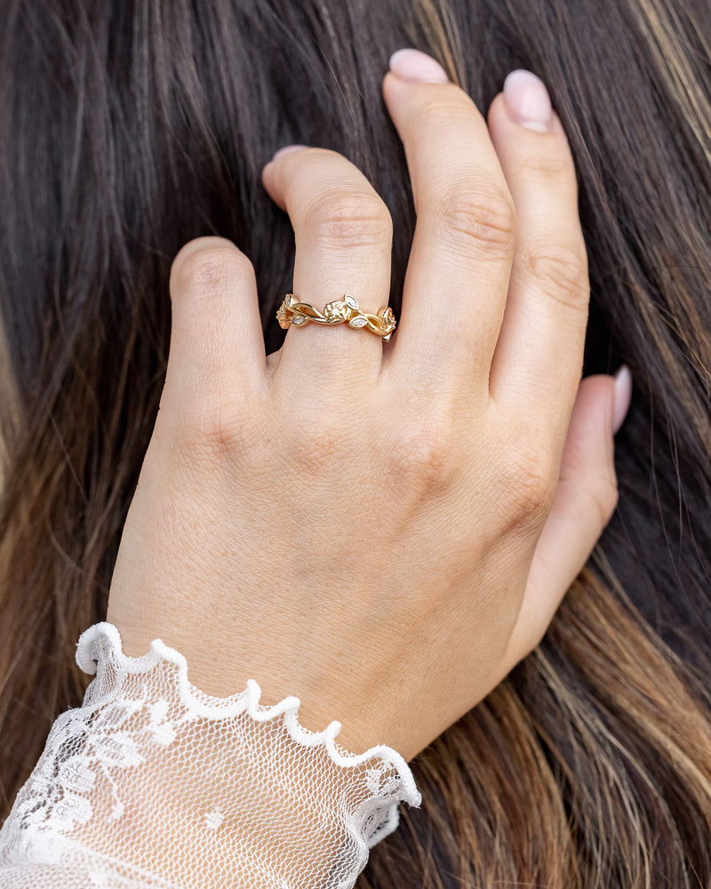 "ELOWEN" - SCULPTURAL-STYLE FLORAL VINE BAND WITH DIAMOND ACCENTS