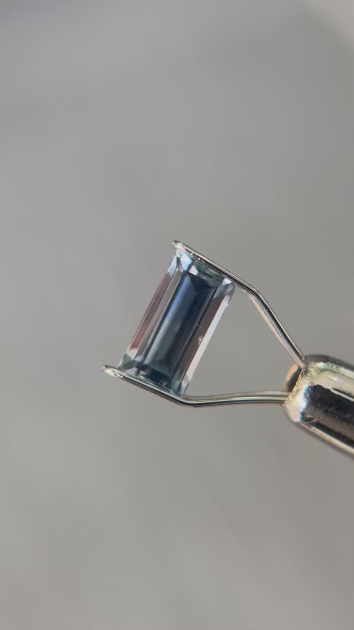 This heated sky blue sapphire was ethically-sourced from Sri Lanka and has been faceted into a unique baguette step cut. This stone would be beautiful in a toi et moi style setting or a two-tone gold setting! Sapphire is one of the most durable gemstones options there are, ranking a nine out of ten on the Moh's Hardness Scale, meaning "Esme" is a fantastic choice for everyday wear!