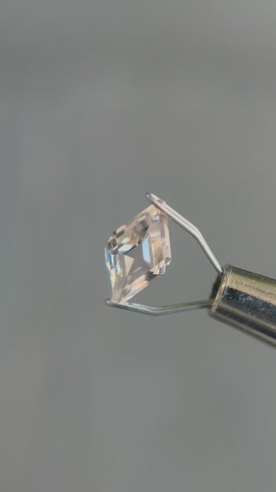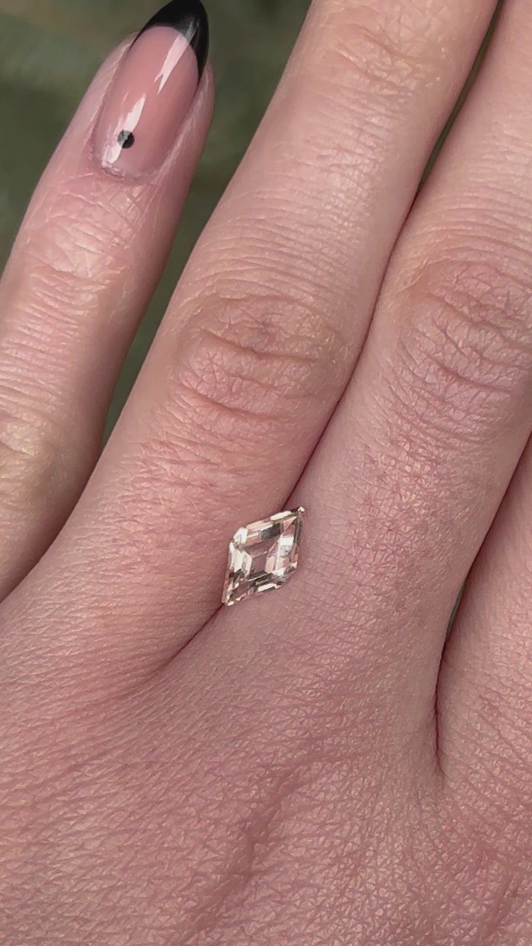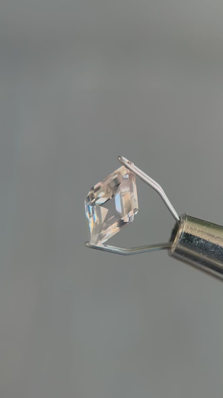 "Eva" is a beautiful Mozambique morganite with a beautiful lozenge cut that reflects clarity and charm. With its beautiful subtle pink tones, "Eva" will be the perfect stone to complete any custom ring design.