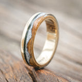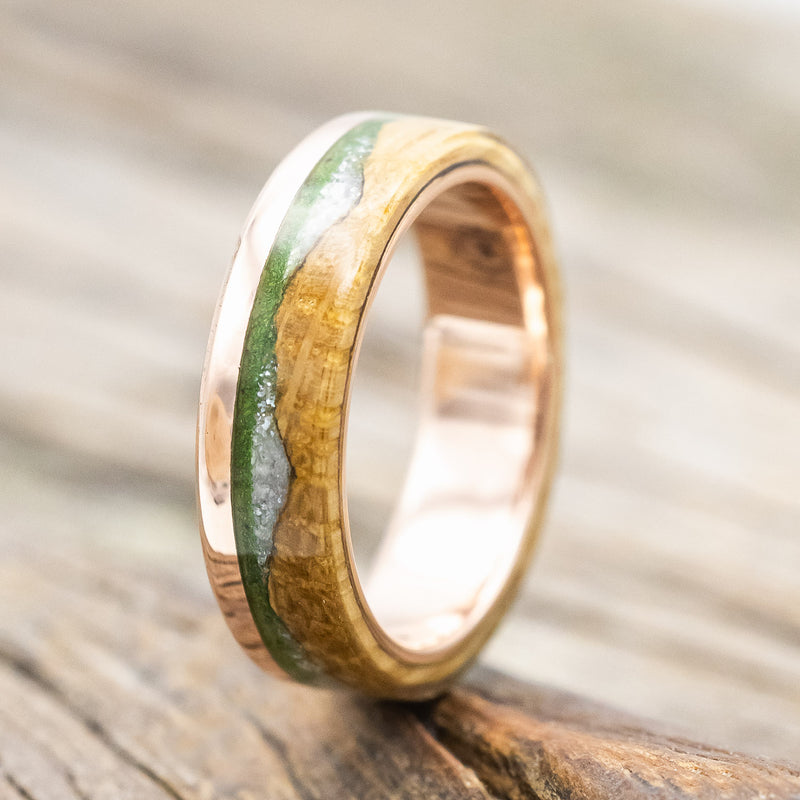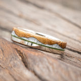 "EZRA" - WHISKEY BARREL OAK WITH DIAMOND DUST & MOSS INLAY WEDDING RING