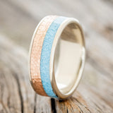 "FLYNN" - TURQUOISE & HAMMERED 14K GOLD INLAY WEDDING RING FEATURING A 14K GOLD BAND