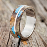 "GOLDEN" - BUCKEYE BURL WOOD & TURQUOISE WEDDING BAND WITH 14K GOLD INLAY