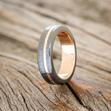 HAMMERED BLACK ZIRCONIUM & 14K GOLD INLAY WEDDING RING FEATURING A 14K GOLD BAND
