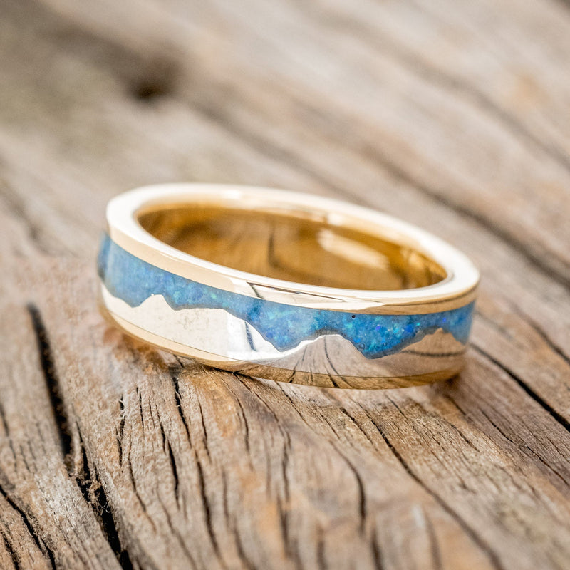"HELIOS" - BLUE OPAL & 14K GOLD MOUNTAIN RANGE WEDDING BAND