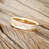 Please note that when you are selecting your desired metal from the drop-down menu you're selecting the BASE metal, not the metal to be used for the mountain inlay. The mountain inlay for this ring can be changed to silver, 14K white gold or 14K rose gold at no additional cost. If no inlay metal is specified in the Custom Requests section we will assume you'd like the metal as stated in the product description.
