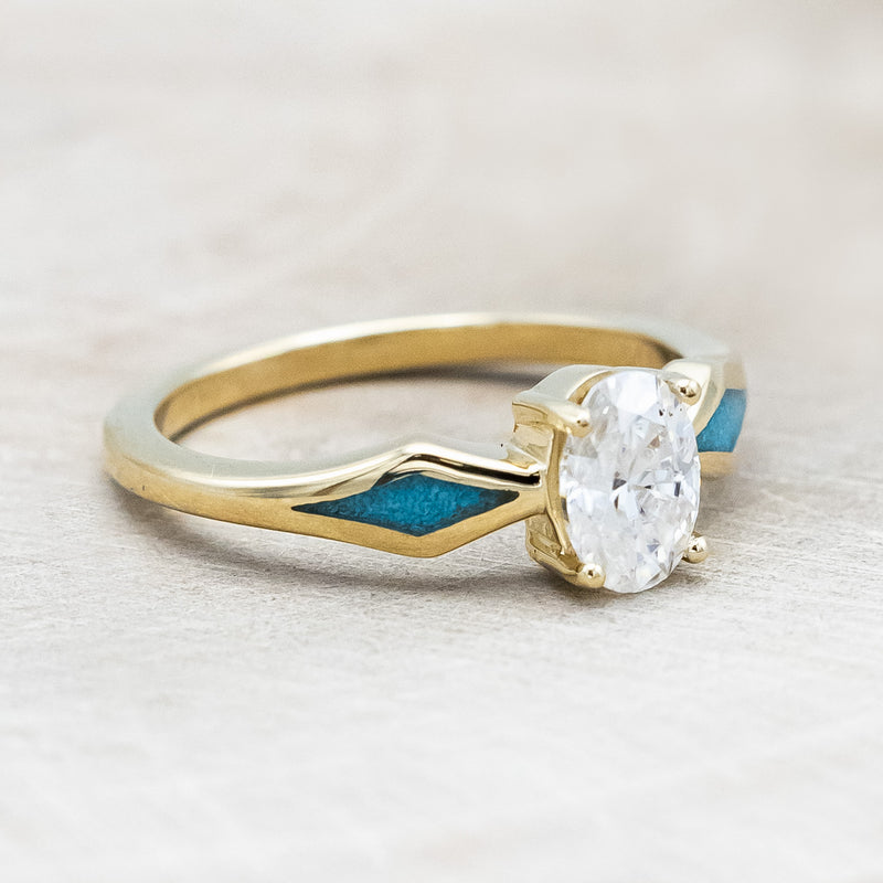 "HERA" - OVAL CUT MOISSANITE ENGAGEMENT RING WITH CRUSHED TURQUOISE INLAYS