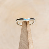 • Ring Style: "Kida" is a custom, handcrafted v-shaped women's stacking band featuring a centered turquoise inlay and offset buckeye burl wood inlays