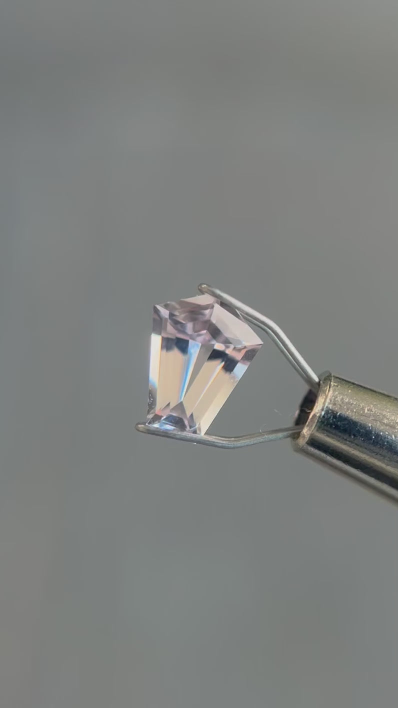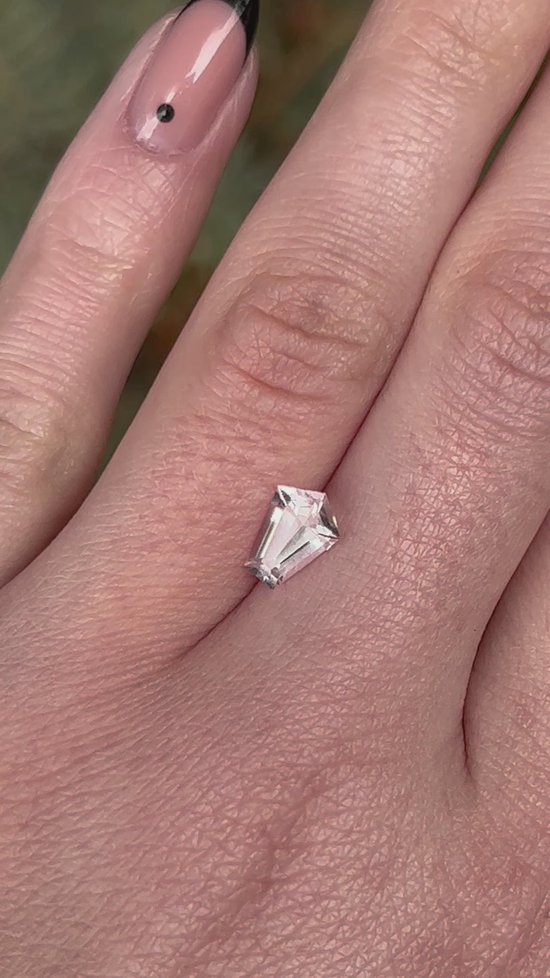 This beautiful stone offers charming light pink tones that are truly mesmerizing in natural light. "Kokomo" is a Nigerian morganite cut into a lovely shield cut