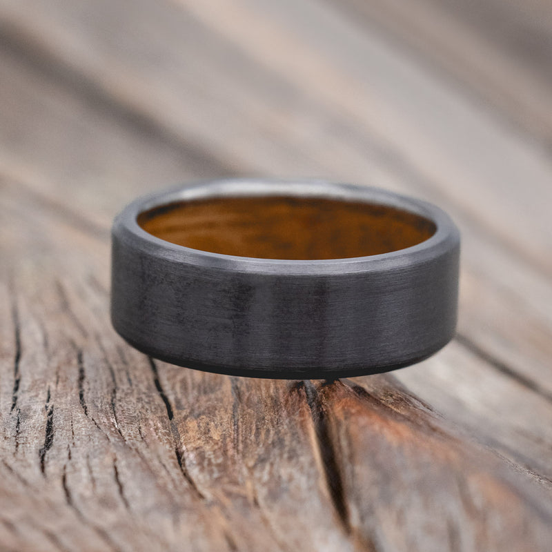 • Ring Style: A custom, handcrafted men's wedding ring featuring a lining and finish of your choice