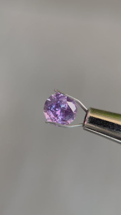 This unheated Montana sapphire features a gorgeous combination of purple and pink colors. "Lone" was named after the Lone Cliff Gulch in Montana. The refreshingly vivid colors this stone showcases make it easy to become entranced!