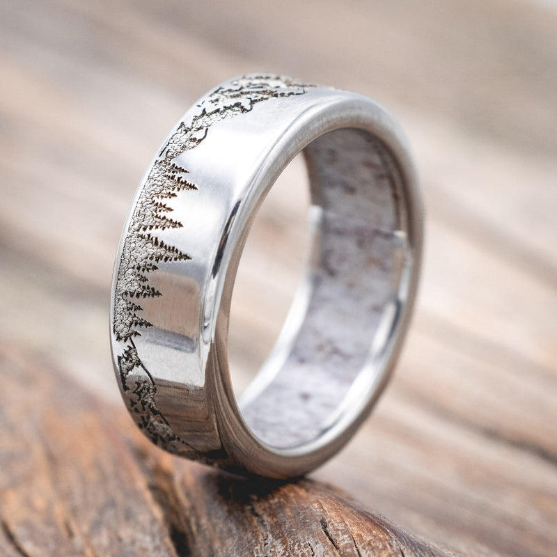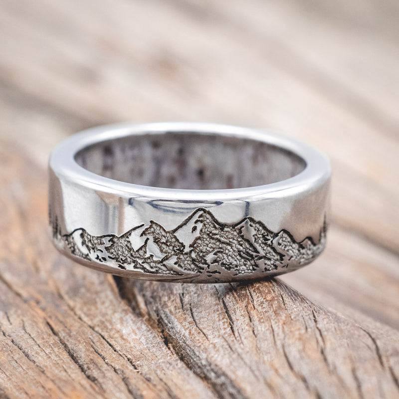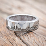 "ROSS" - MOUNTAIN & FOREST ENGRAVED WEDDING BAND WITH CUSTOM LINING