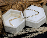 A delicate and elegant bracelet that features a bezel set natural white diamond. The design of this bracelet is characterized by its understated and subtle appearance, showcasing a thin and lightweight chain that gracefully encircles the wrist.