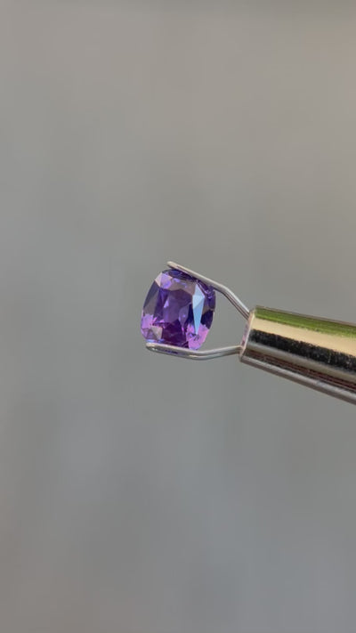 Coming from Sri Lanka with a superb display of blue and purple, this color change sapphire is a show stopper. "Corella" shifts between shades of purples, blues, and pinks like a dusk sky. Purple is an uncommon gemstone color, and sapphire is one of the most durable options there are. If you're looking for something truly unique for a custom ring - "Corella" is it!