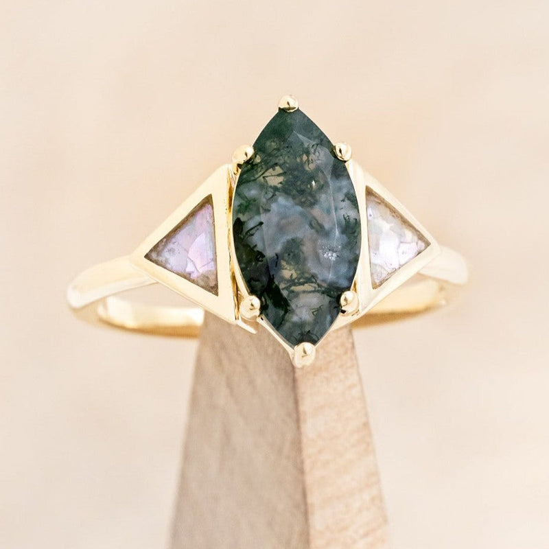 "BLOSSOM" - ROUND CUT MOSS AGATE ENGAGEMENT RING WITH DIAMOND ACCENTS