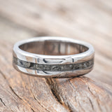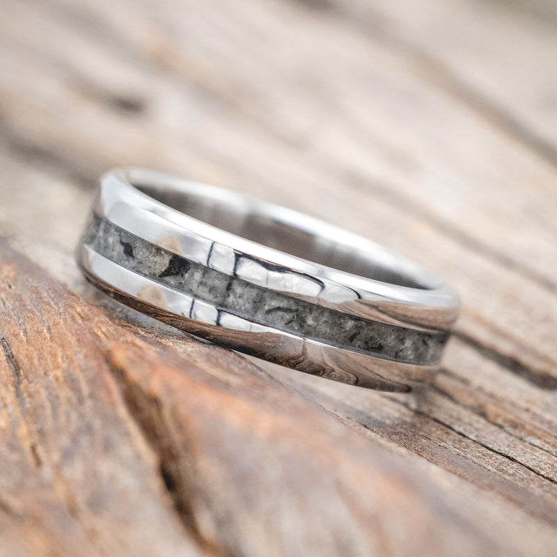 • Ring Style: "Nirvana" is a custom, handcrafted men's wedding ring featuring a centered crushed moonstone inlay
