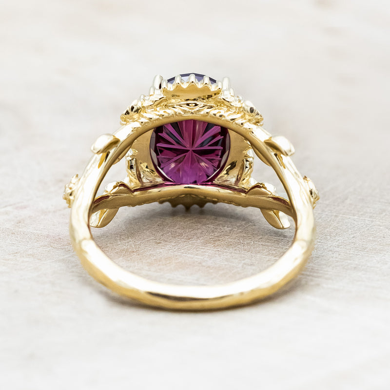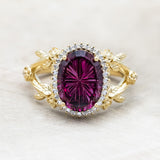 ONE-OF-A-KIND - "HALINA" - STARBRITE OVAL CUT RHODOLITE GARNET ENGAGEMENT RING WITH DIAMOND ACCENTS