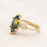 • Ring Style: This is a one-of-a-kind "Morrigan", a solitaire Australian sapphire women's engagement ring on an ornate 14K yellow gold band