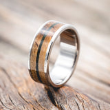 • Ring Style: "Rainier" is a handcrafted men's wedding ring featuring moss and spalted maple wood inlays